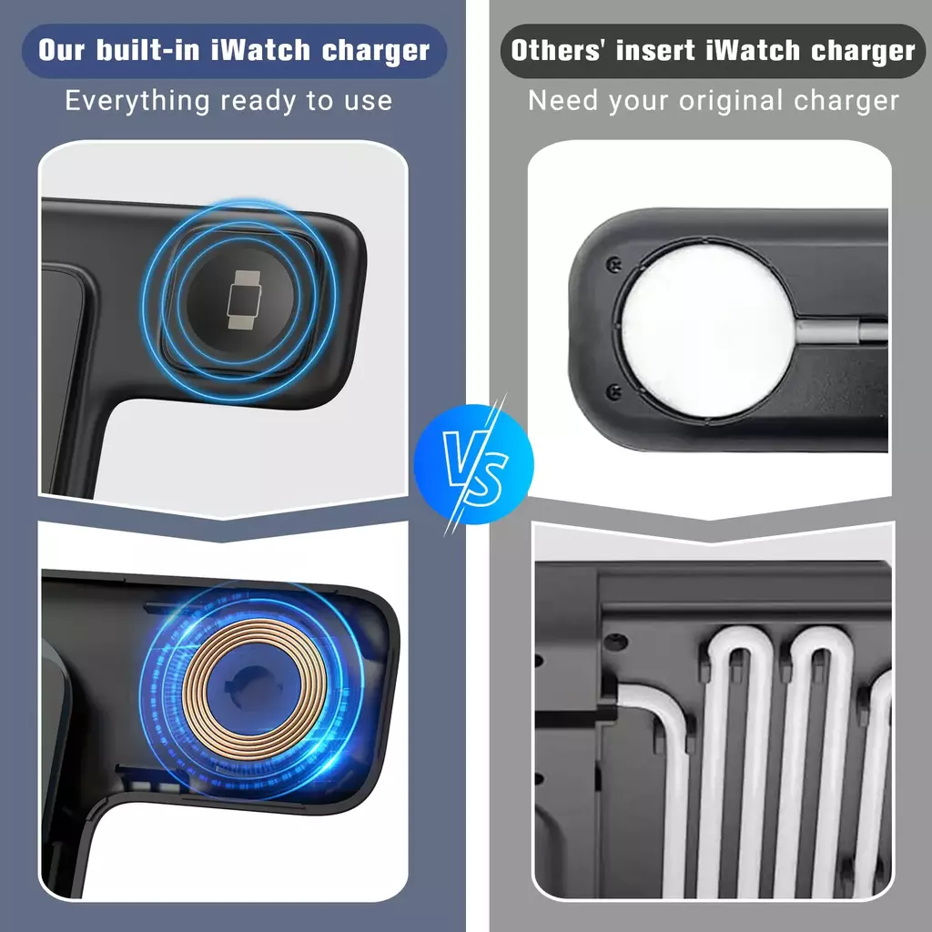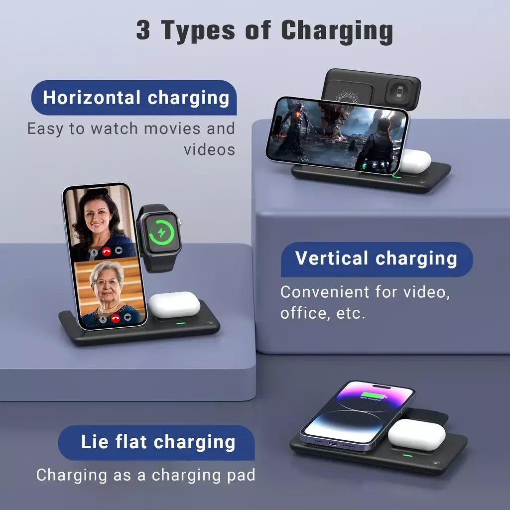 NOTA: Para uma experiência de carregamento rápido, use o adaptador de energia QC 3.0Sobre este itemCOM DESIGN DE BOBINA DE CARREGAMENTO DUPLO: A nova estação de carregamento sem fio 3 em 1 de 2023 pode fornecer uma experiência de carregamento mais estável sem o carregamento intermitente ou superaquecimento causado por incompatibilidade.Melhorou a velocidade de carregamento, elimina o incômodo de encontrar a "Melhor localização".SUPORTE DE CARREGADOR SEM FIO 3 EM 1: estação de carregamento sem fio pode carregar seu Apple iwatch 2/3/4/5/6/SE/7/8/Ultra ?NÃO PODE para Samsung Watch? , Airpods Pro/2/3/Pro2, telefones ao mesmo tempo, como para iPhone 15/15Pro/15 pro max/14/14 Plus/14 Pro/14 Pro Max/13 Pro/13 Pro Max/13 Mini/12 Pro/12 Pro Max/12 Pro Max/12 Mini/11 Pro/11 Pro Max/SE/8/8/8/8 plus, série Samsung Galaxy S22/S21/S20/S10 e todos os dispositivos com certificação Qi.Diga adeus aos cabos bagunçados, deixe sua mesa e mesa de cabeceira organizadas e organizadas.Para uma melhor experiência de carregamento, use o adaptador de energia QC 3.0 (adaptador QC 3.0 não incluído).CARREGAMENTO DE SEGURANÇA: O carregador de telefone sem fio fornece controle de temperatura e proteção de tensão e prevenção de curto-circuito, e a parte traseira do carregador é equipada com orifícios de ventilação para garantir um carregamento seguro e estável.Este carregador sem fio tem certificação Qi, garantia dupla e segurança dupla proporcionam uma experiência de segurança.Almofadas de silicone antiderrapantes na base e na parte inferior protegem seus dispositivos contra arranhões e deslizamentos durante o carregamento.Especificações: