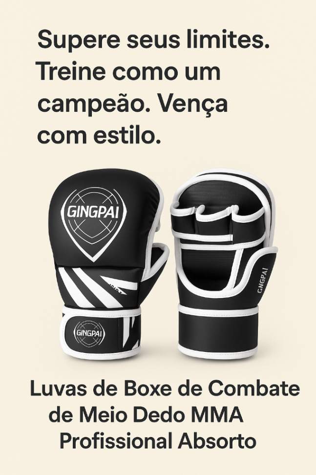 As Luvas de Boxe de Combate de Meio Dedo MMA Profissional Absorto foram criadas para quem leva a luta a sério — sejam iniciantes ou profissionais. Projetadas para oferecer máxima proteção, liberdade de movimento e durabilidade extrema, elas combinam tecnologia e conforto em um design moderno e impactante.