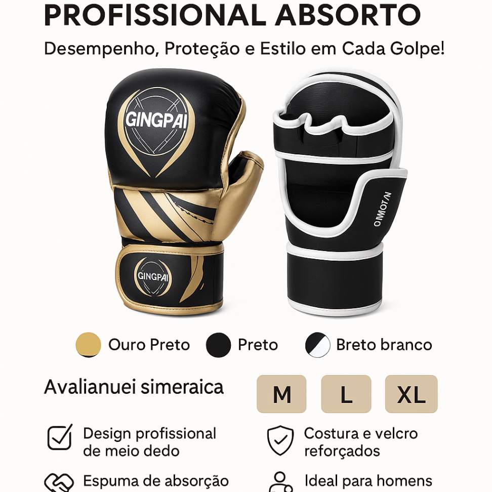 Treine com estilo, potência e confiança com as Luvas de Boxe de Combate de Meio Dedo MMA Profissional Absorto.